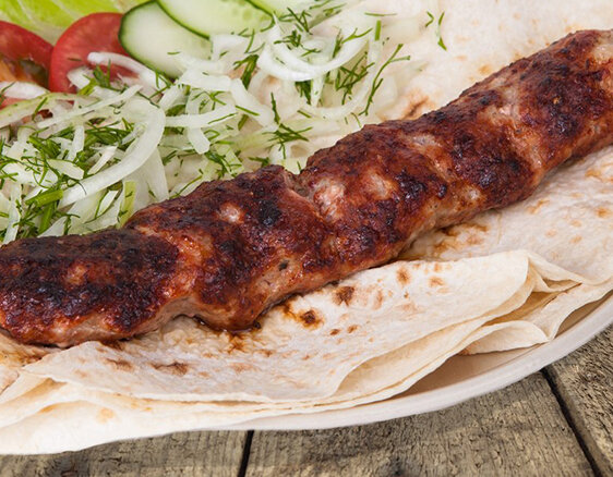 - Готовый фарш разделяем на кусочки весом 40 гр. и формируем колбаски толщиной около 3 см. и длиной 15-20 см. Лепим руками, смоченными в холодной воде. Полученные колбаски нанизать на шампуры. Нанизанные колбаски дополнительно отбиваем, чтобы лучше закрепились на шампурах.