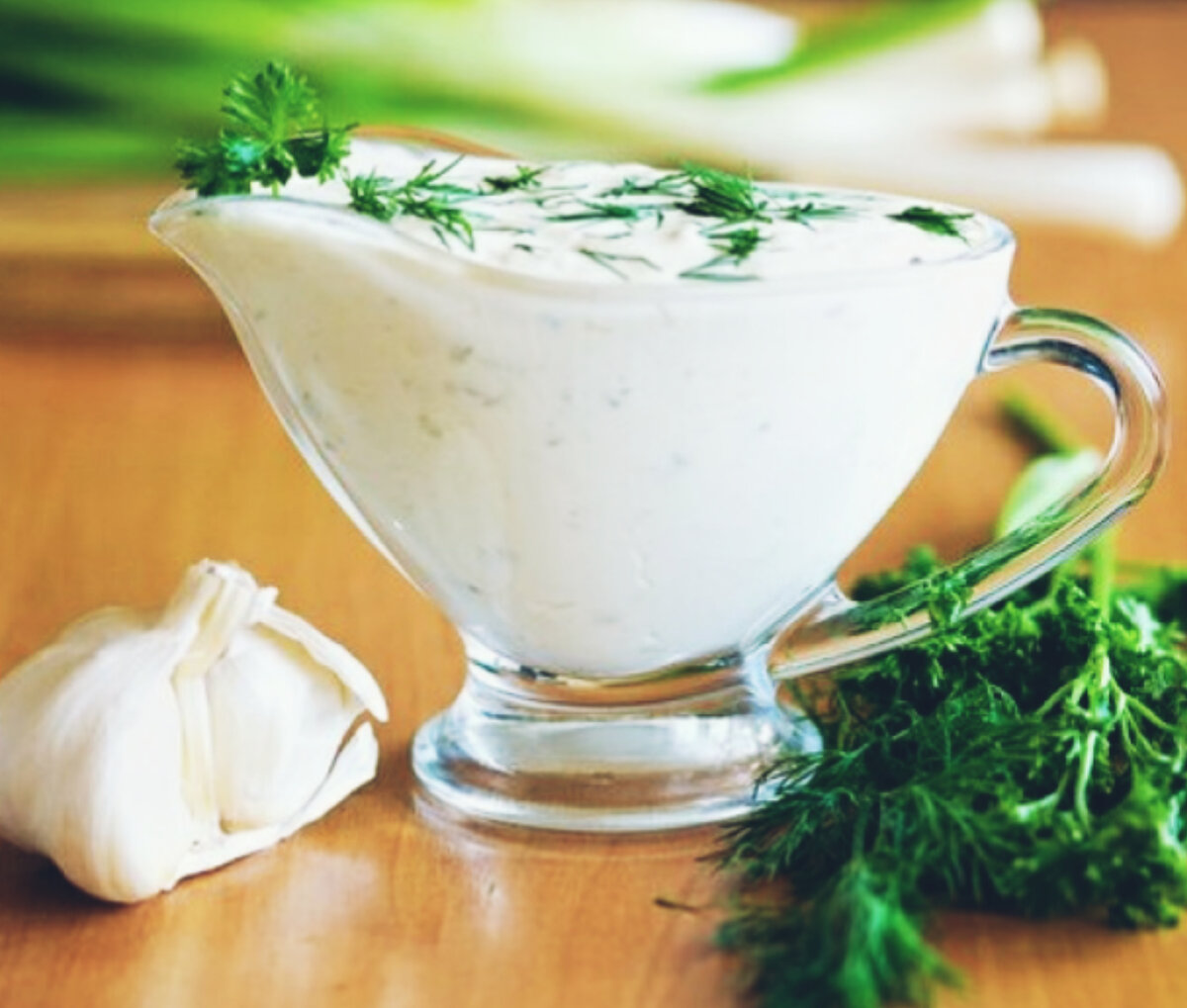 Требуется: 1/2 стакана растительного рафинированного масла, 2-3 ст. л. чесночного сока, 1 ст.л. лимонгого сока, красный и чёрный перец, зелень. Способ приготовления: Ингредиенты тщательно перемешайте, слегка подогрейте. Соус подавайте к мясным или рыбным салатам с вареными овощами.