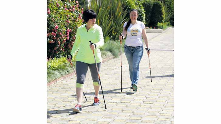 Скандинавская ходьба — эффективный и дешевый способ тренировок. Всех затрат — порядка тысячи рублей на комплект палок. Плюс хорошая обувь. Это очень щадящий метод физических нагрузок. Скандинавскую ходьбу включают в курс реабилитации после инфарктов и инсультов. Она подходит для беременных и пожилых, при условии, что правильно выбран темп. Многие ошибочно недооценивают этот вид спорта, считая, что он дает слабые нагрузки. Но это происходит из-за того, что многие считают, что в самом процессе нет ничего сложного — идешь, по-стариковски опираясь на «лыжные палки». В этом и кроется основная ошибка: если просто идти и опираться, то палки выполняют роль «костыликов» и нет правильной нагрузки на мыщцы спины и плечи. На самом деле, здесь много нюансов. По стандартам три занятия ставят только правильный шаг. ДЛИНА ПАЛОК. Многие выбирают их, как лыжные — «до подмышки». На самом деле надо свой рост умножать на коэффициент 0,66. Отметить свой «размер» на шкале палки специальным бегунк