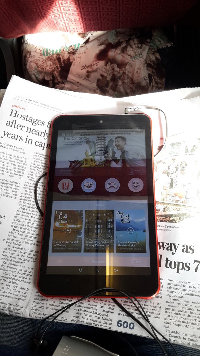 Рейс Пекин-Маньчжурия. Русского языка не было. Фильмы и музыка не включались. Английская версия было сильно урезана. Пришлось смотреть картинки в китайской версии.