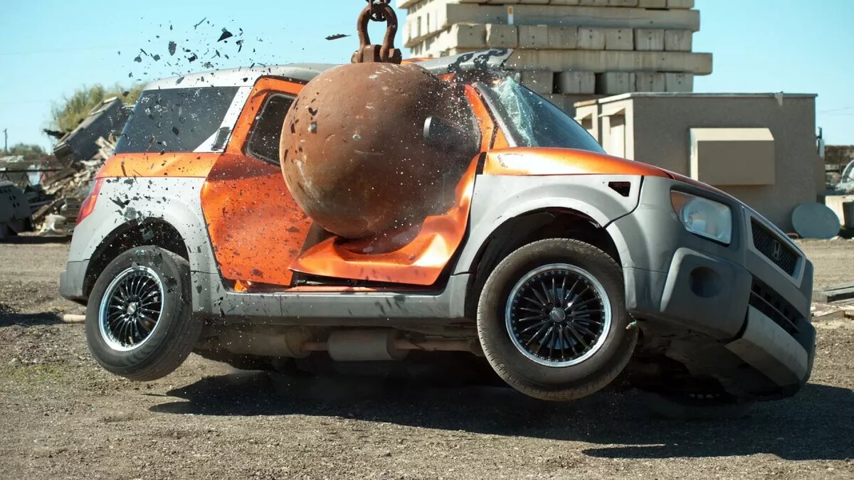 Как уничтожают машины четырехтонным шаром в слоу-мо