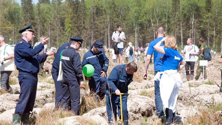Работники учреждения «Мособлпожспас» совместно с сотрудниками МЧС РФ приняли участие в ежегодной акции «Лес Победы», которая проводилась уже в шестой раз на территории Московской области. В этом году центральная площадка развернулась у деревни Жилино Солнечногорского района. Почти 160 тысяч саженцев сосны, дуба и липы на 40 гектарах высадили более 7000 человек, в том числе сотрудники клинского территориального управления силами и средствами ГКУ МО «Мособлпожспас» во главе с его начальником Александром Зубовым. Галина Ремезова