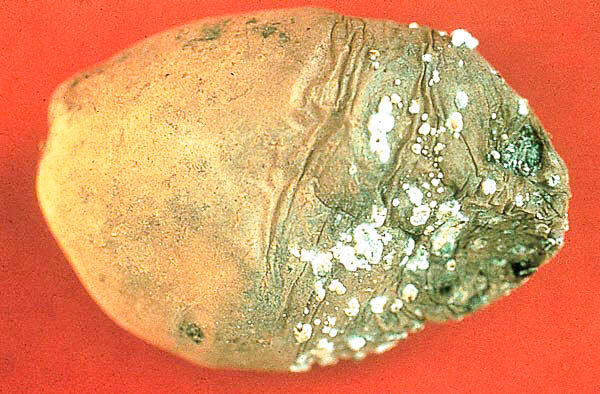 Что делать, если картофель начал гнить после посадки? Что является причиной? Как ее избежать? Одно из самых распространенных и опасных заболеваний картофеля является сухая гниль или фузариоз. Это грибковое заболевание очень быстро передается и может лишить Вас примерно 20% урожая, если не предпринять никаких мер по избавлению от него. Распространенность данной болезни обусловлена тем, что фузариоз может проявиться на всех стадиях вегетации: в молодой почве или на хранении в погребе. Так же, одной из причин является неправильное хранение картофеля. Сухая гниль остается на клубнях, переносится с почвой и может остаться в местах хранения. Как обнаружить сухую гниль? Грибок фузариоза обитает практически в любой почтве, но проявляет себя не сразу, а только тогда, когда дождется благоприятных условий. Таковыми условиями для него является почва перенасыщенная азотом или хорошо удобренная навозом. Если Вы переусердствуете с такими подкормками, то вероятнее всего, Вас ожидает эта неприят