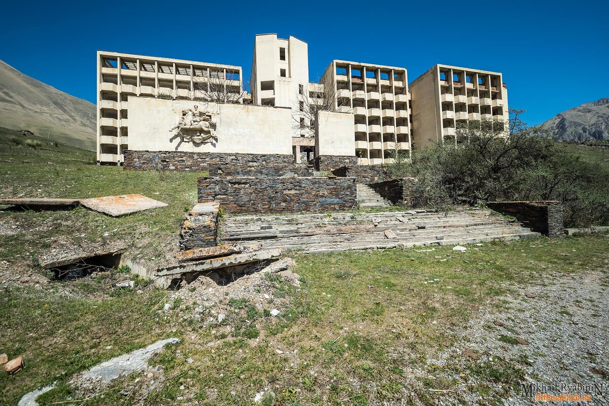 После развала СССР многие его достижения стали не нужны новым коммерсантам и нефтепродаванам. Одним из таких достижений был огромный и современный по меркам конца 80-х годов санаторий в Кармадонском ущелье Северной Осетии - Алании. Санаторий даже по современным меркам выглядит шикарно, а в свое время был построен на мировом уровне, но Союз кончился и приоритеты страны изменились, работников предприятий перестали отправлять по профсоюзным путевкам. Какой там санаторий!? Наступило время на рынке стоять... Санаторий был полностью построен, но так и не был запущен. Попадая вовнутрь понимаешь, что это реально было строительство на самом высоком уровне. Внутри все украшено диким и обработанным натуральным камнем. Везде дорожки, газоны. Внутри множество уютных двориков, в которых расположились бы зоны отдыха или летние кафе. Даже спустя почти 30 лет после того, как санаторий стал не нужен, он оставляет очень приятные впечатления от планировки и построек. Внутренние коридоры простые, а сами но