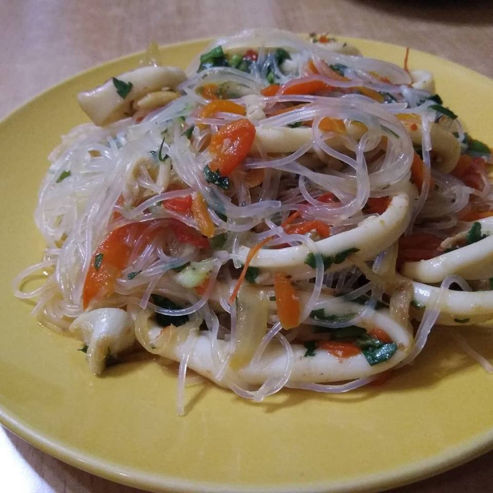5. Добавила заранее замоченную в кипятке фунчозу и зелень.
