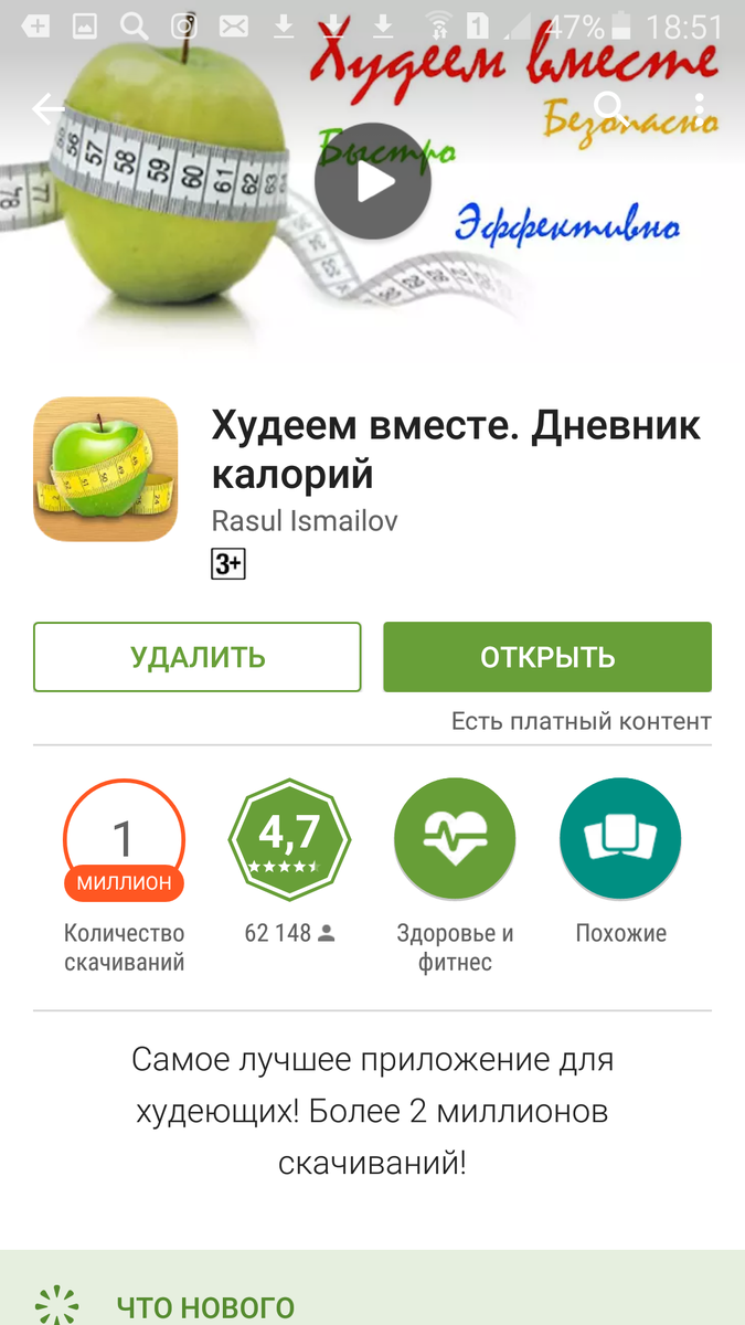 С калькулятором калорий мы разобрались, теперь переходим ко второму этапу. Для того, чтобы не запутаться в цифрах, нам нужен "дневник", куда мы будем записывать все, что съели в течение дня. Кстати, напитки тоже входят в понятие "съели". Я пользуюсь бесплатной программой для смартфонов, которая называется "Худеем вместе". Выглядит она вот так :