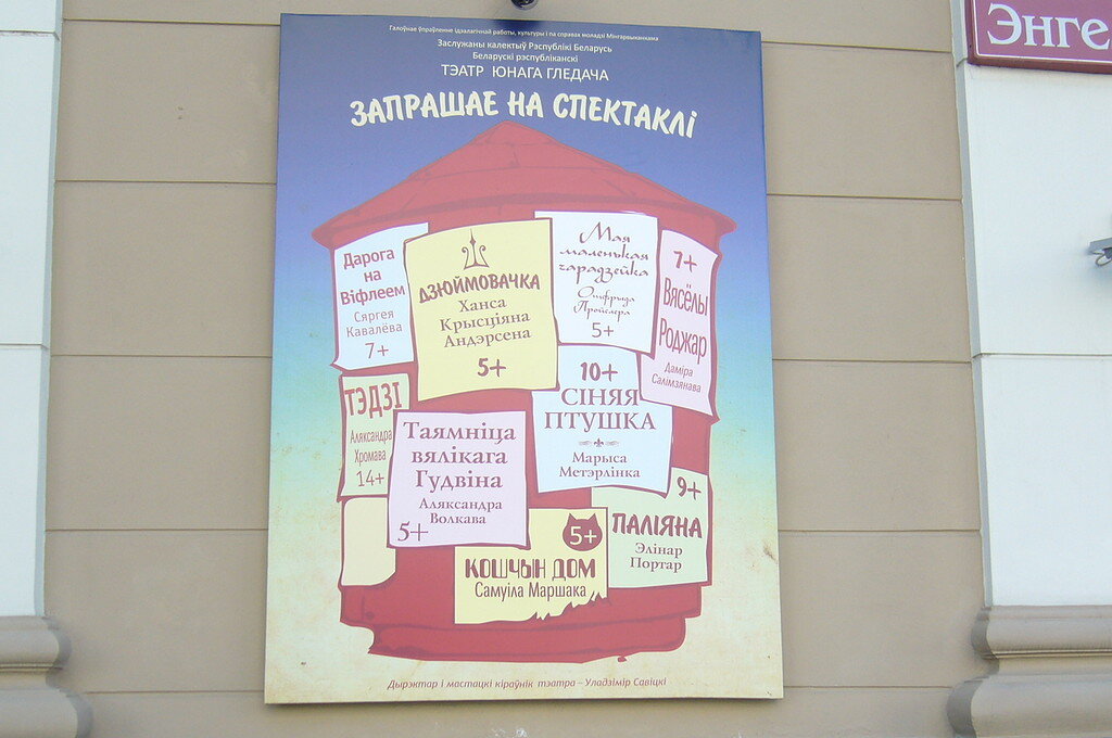 Вы когда-нибудь обращали внимание на театральные афиши Театра Юного Зрителя? А это может быть интересно. Гуляла на днях по минской улице Энгельса. И наткнулась на прекрасное.