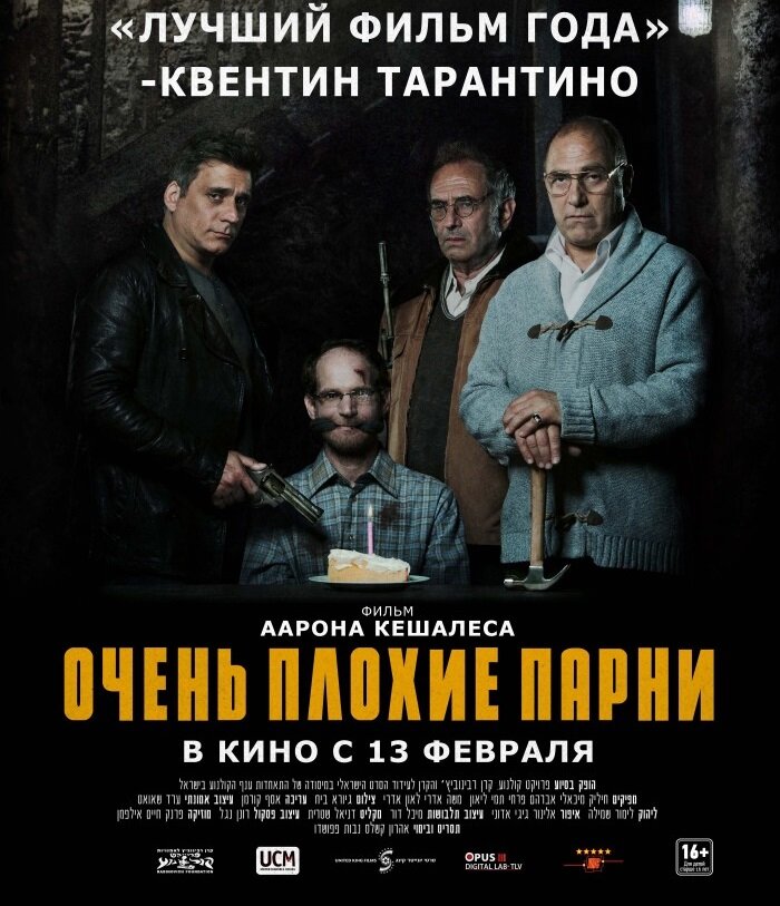(2013, Израиль) "Лучший фильм года!" - так выразился Квентин Тарантино об «Очень плохих парнях», если верить российскому постеру. М-да, более претенциозного заявления тут сделать нельзя. Однако упс! - на оригинальном израильском постере мы такого заявления от Тарантино почему-то не наблюдаем. Ну да ладно. В конце концов, плох тот еврей, который не пытается вас надуть, призвав в свидетели либо весь город Киев, как легендарный Паниковский, либо Квентина Тарантино, как в данном случае.