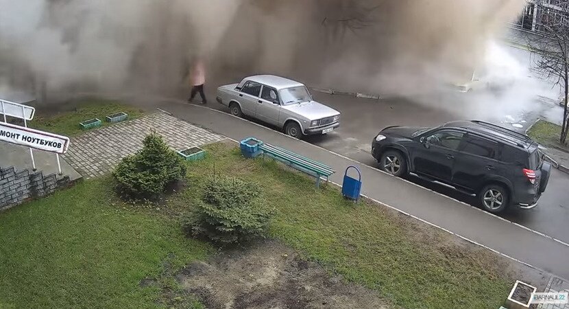 Видео эпичного «извержения» попало на камеры наружного наблюдения. На видео попал момент прорыва водопровода на Улице Балтийская в Барнауле, произошедшего 17 мая. На записи видно, как пожилая женщина идет по парковке рядом с домом. Внезапно в десятке метров от нее из-под земли вырвался фонтан воды. Волной женщину сбило с ног. Как пишут местные СМИ, причиной ЧП могли стать гидравлические испытания, проводимые Сибирской Генерирующей компанией. Очевидцы уверяют, что пострадавшая пожилая женщина оправилась и самостоятельно добралась до своего дома. В Алтайском филиале СГК заверили, что температура воды не превышала 40 градусов по Цельсию. Кстати, проводимые гидравлические работы были плановыми. Такую практику применяют каждый год при подготовке к отопительному сезону для выявления слабых участков водопровода.