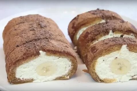 Этот нежнейший рулет с творожно-банановой начинкой, просто тает во рту! Ароматный кофе, пропитывающий печенье и сочетание крема из сливок дают просто волшебный вкус! Обязательно приготовьте такой десерт дома, побалуйте себя и близких! Сказочная выпечка без выпечки. Для приготовления рулета нужно: Печенье савоярди-22 шт. 200 мл