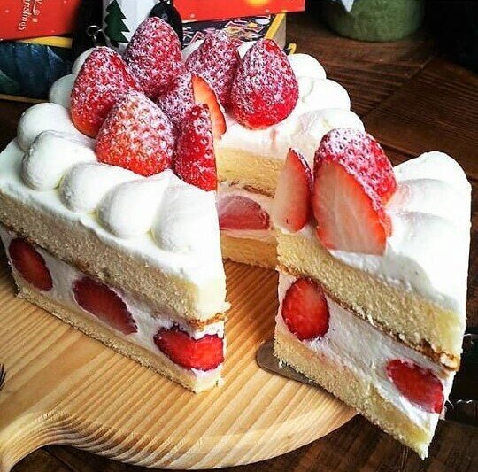Собираем торт: бисквит режем на 2 коржа. Укладываем корж в разъемную форму, затем по бортику клубнику, порезанную пополам, а в центре про