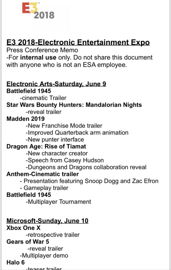 Утечка в сеть списка игр которые буду представлены на E3 2018