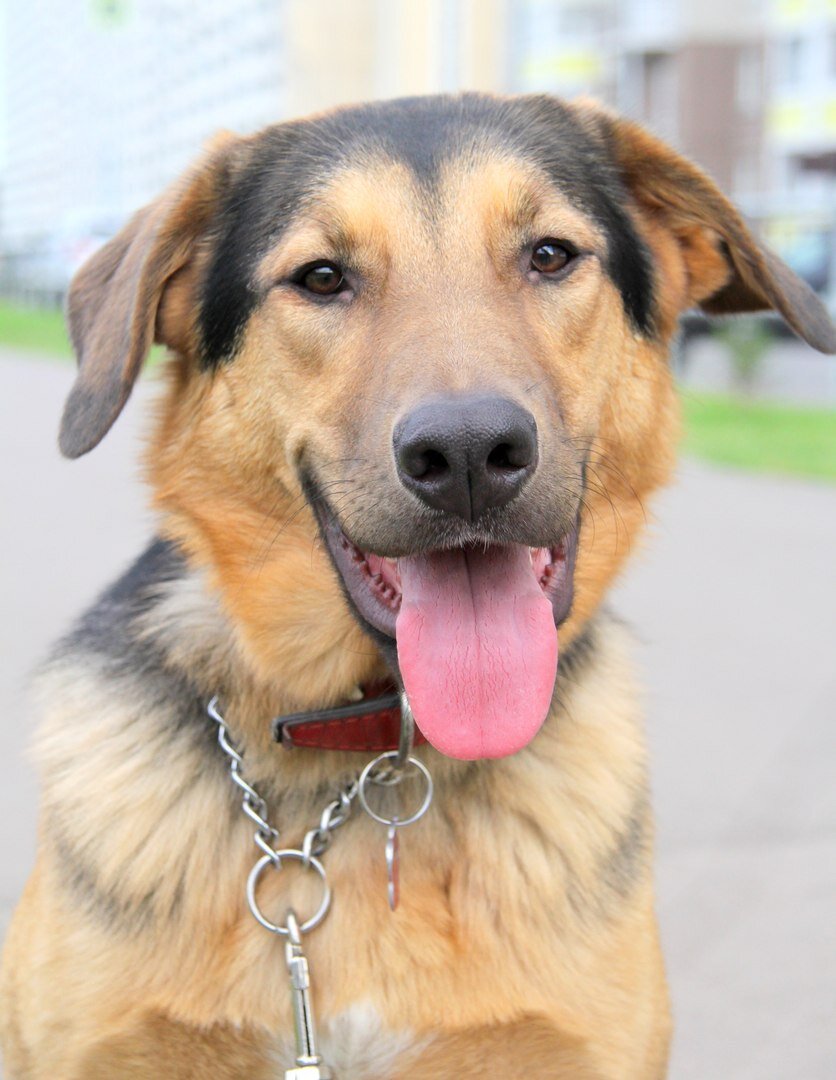 Робину 2,5 года, рост в холке 65 см, выше колена, вес примерный 35 кг, находится на квартирной передержке в Москве. Привит, кастрирован, ест сухой корм. Знает команды, отлично ходит на поводке и ездит в машине, проходит сейчас курс молодого бойца, то есть общий курс дрессировки на площадке. Добрый, ласковый, с уравновешенной психикой, ориентирован на человека, ребёнка никогда не обидит, к другим животным лоялен. Охранять может, разве что отпугивая посторонних своим громким басом :)