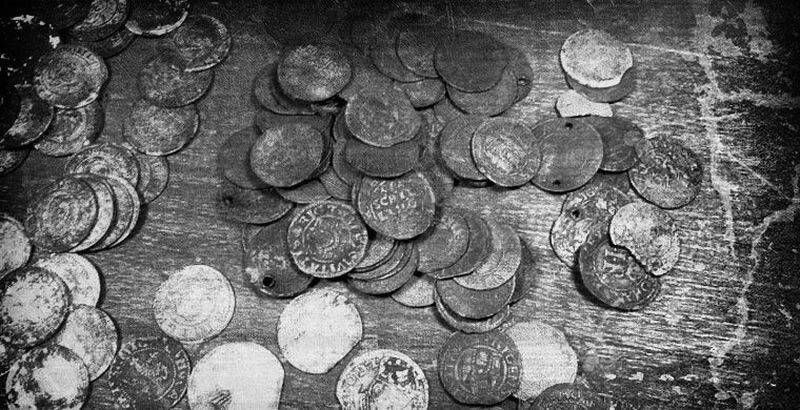 - Дождь из старинных монет XVI-XVII с. Мещеры, Россия, 1940 год