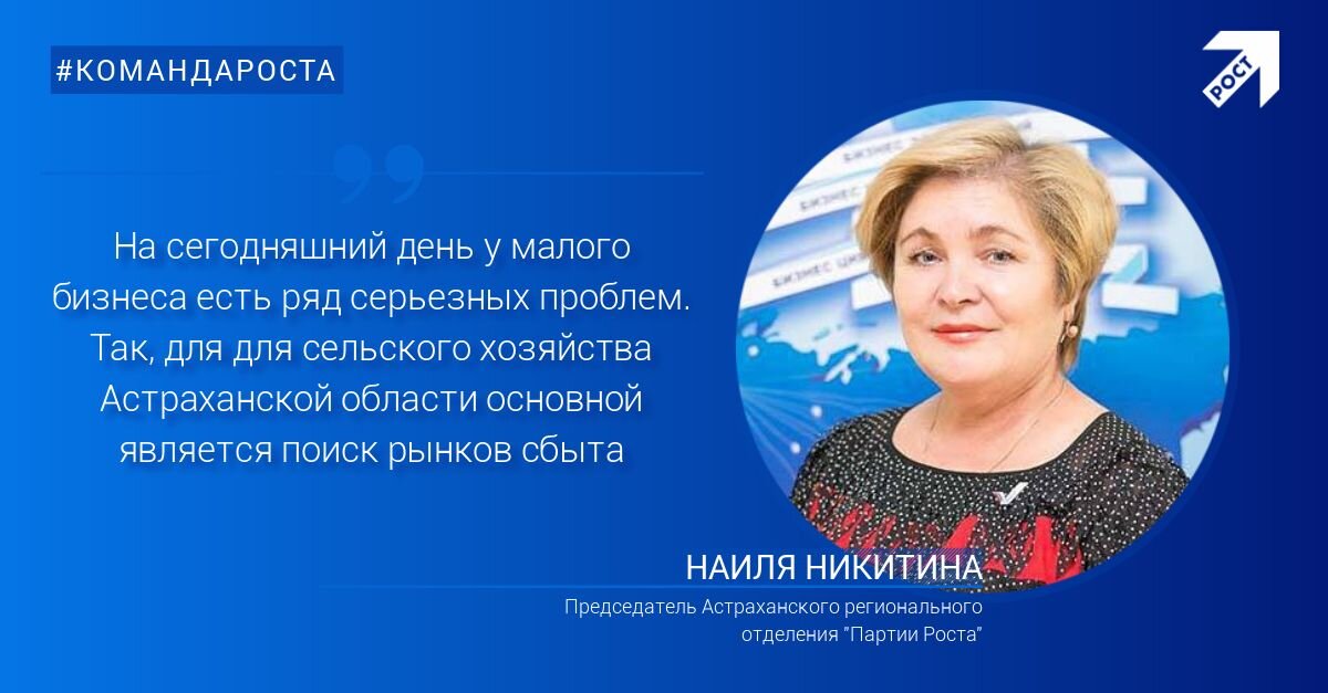 Партия Роста "На сегодняшний день у малого бизнеса есть ряд серьезных проблем. Рассмотрим на примере Астраханской области, где я являюсь уполномоченным по защите прав предпринимателей при Губернаторе АО. Так, наши фермерские хозяйства закрываются, по причине того, что сельскохозяйственная производительность не может реализовать и вывести свою продукцию на другие территории России. Рынки сбыта - одна из главных проблем малого бизнеса для сельского хозяйства в Астраханской области.