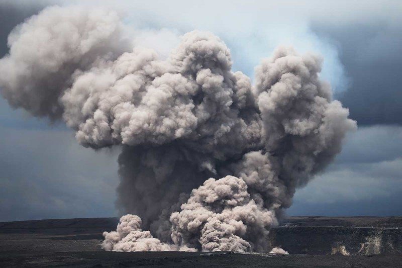Большие валуны длиной 2 метра и весом 10 тонн вскоре могут начать взрывную работу из Килауэа, извергающегося вулкана на Большом острове Гавайев. Но самая большая угроза для жителей может возникнуть, если вулкан начнет извергать пепел до высот 6000 метров и более. Условия аналогичны условиям, когда Kilauea в последний раз разразился в 1924 году, и в течение нескольких месяцев осыпали остров в пепле. «Это то, что, как я предполагаю, произойдет потом», - сказал Дон Свансон из Гавайской обсерватории вулканов , на пресс-конференции, выпущенной 9 мая . Kilauea был необычайно активен с конца апреля. 30 апреля пол лавового озера на вершине вулкана рухнул. С тех пор лава истощается. К 9 мая и после землетрясения силой 6,9 баллов 3 мая он уже погрузился почти на 300 метров в вертикальный вал ниже. Лава теперь ниже уровня насыщенной водой породы на высоте 600 метров над уровнем моря. «После землетрясения озеро лавы упало очень устойчиво, на 2,2 метра в час», - сказал Свансон. Паровые взрывы Поск