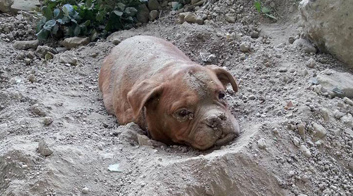 Мужчина нашел собаку, которая была почти полностью засыпана землей