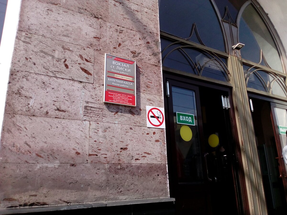 В прошлый раз, когда мы пересаживались на этой станции в Воронежской обл-ти с адлерского поезда на казанский (кажется, это был "Новороссийск - Пермь"), в трёх разных киосках мне пытались продать продукты с истекшими сроками годности. С тех пор в Лисках я ничего ни у кого не покупаю. Хотя стоянки поездов здесь всегда по 10-30 минут. Но меня как клиента они потеряли. А вот собор у них красивый, величественный и виден издалека, когда подъезжаешь на поезде с юга Зал ожидания удивил... люстрами: Впервые увидел такие в здании железнодорожной станции. Их соседство с офисным потолком резануло глаз... В Лисках, как я понял, меняют локомотив. Поэтому стоянки здесь всегда относительно продолжительные.