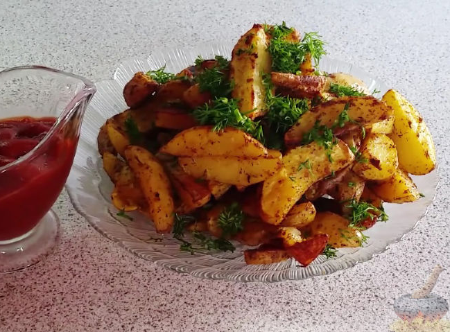Я предлагаю вам самый быстрый и простой в приготовлении рецепт картофеля. Картошка по-деревенски в духовке - отличная альтернатива картофелю фри и жареной картошке. Продукты (на 4 порции) Картофель - 1 кг Масло растительное - 3-4 ст. ложки Соль - по вкусу Зелень для подачи (по желанию) Пряности (по вкусу):Перец душистый молотый Чеснок гранулированный Паприка сладкая молотая Приправа для картофеля Пошаговый фото рецепт Картошка по-деревенски в духовке Как приготовить картошку по-деревенски в духовке: