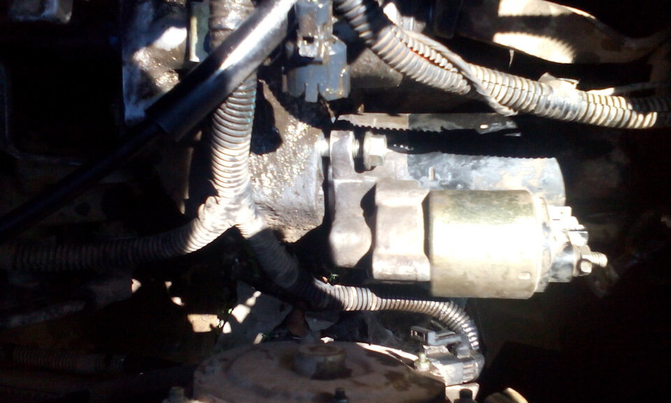 Здравствуйте, друзья! Сегодня хочу рассказать вам об одной неприятности, которая может приключиться с каждым.... Как то утром собрался я на работу, сажусь в авто и начинаю запускать двигатель, однако стартер отказался крутить коленвал, а издавал лишь жужжащие звуки. Пришлось позвонить на работу и сказать что задержусь, ведь предстояла кое какая работенка. Отмечу, что стартер и раньше выдавал подобные злые шутки, но обычно все заканчивалось успешно и после нескольких попыток двигатель запускался. В этот раз завести его не удалось. Подробно рассказывать процесс снятия стартера я не буду, чтобы сэкономить ваше драгоценное время, но скажу что снимал стартер я впервые. Чтобы к нему подлезть мне пришлось снять корпус воздухана и гофру и вот он предстал передо мной. Стартер держался на двух шпильках при помощи гаек на 15. Верхнюю гайку я открутил без проблем, а с нижней пришлось повозиться: поддомкратить машину и снять защиту картера. Все прошло успешно и стартер был у меня в руках. Я сразу з