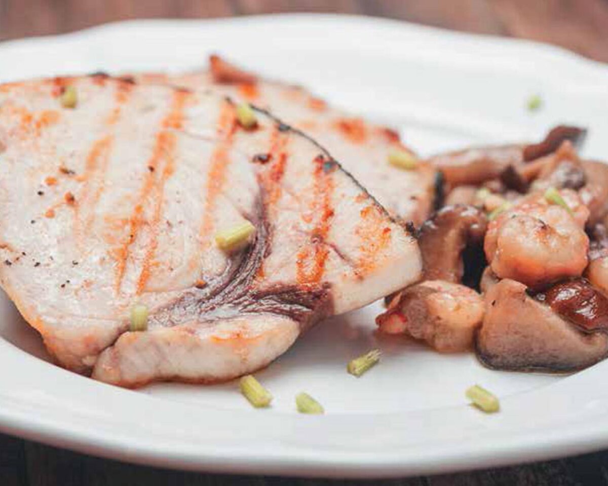 Время приготовления: 50 мин Ингредиенты: 500 г филе сома 3 ст. л растительного масла 30 г сушёных белых грибов 2 ст. л. топлёного масла 100 мл рыбного бульона соль и перец по вкусу Калорийность: 131 ккал Приготовление: 1. Рыбное филе разделить на порционные куски, посолить и поперчить. На сковороде разогреть растительное масло, обжарить рыбу до готовности с обеих сторон. 2. Грибы отварить, нарезать ломтиками или кусочками. Обжаривать в топлёном масле 8–10 минут. Влить рыбный бульон, посолить, поперчить, тушить 15 минут, пока грибы не станут мягкими. 3. Куски рыбы выложить на тарелки, полить грибным соусом, подавать к столу. Всем приятного аппетита!! Если понравилась статья- поставьте лайк, нам будет очень приятно!!