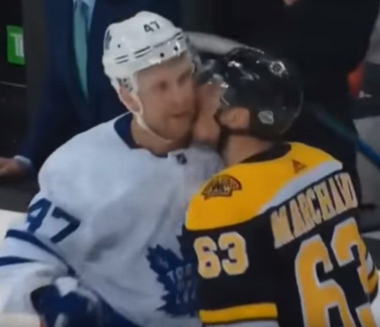 Cамый ненавидимый хоккеист в истории НХЛ лизнул соперника. Опять! Игрок команды «Бостон» канадец Брэд Маршанд в матче против «Тампы» подрался с соперником Райаном Каллаханом. Всё бы ничего, но после этого Брэд лизнул Райана в лицо. Он делает это уже второй раз, а ещё однажды он целовал соперника в щёчку. «Я думал, он хочет пообниматься. Вот я и сблизился с ним. Он тоже хотел подобраться ко мне поближе. Он милый», — прокомментировал после матча любвеобильный хоккеист. Сразу объясняем, он делает это специально, чтобы вывести соперников из себя, а не для того, о чем вы подумали…