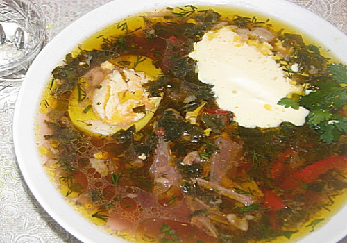 Борщ со щавелем – превосходное горячее блюдо к обеду, которое можно подавать со сметаной и пампушками с чесноком. Такое блюдо, что-то среднее между зеленым борщом и красным, но вкус у него просто великолепный. Вместо капусты в летний борщ кладётся щавель, причём свежий или консервированный. Именно он придаёт первому блюду особую кислинку, образуя более выразительный вкус. Возможно, вас удивит присутствие в этом борще свеклы, но она не только отвечает за насыщенный цвет бульона, но и тоже вносит особый сладковатый вкус и аромат. В пошаговом приготовлении летнего борща со щавелем и свеклой с фото, свекла не запекается предварительно и не тушится в поджарке, а сразу закидывается в бульон – таков уж рецепт этого зеленого борща. В летний борщ можно класть также любую свежую зелень, а также болгарский перец, чтобы он стал более ароматным и полезным. Это блюдо прекрасно насыщает, утоляет голод и пополняет организм витаминами. Попробуйте домашний рецепт борща, вам должен понравиться его нео