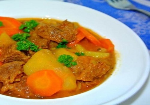 Как правильно приготовить жаркое по-домашнему с картошкой, чтобы оно получилось вкусным, питательным и не занимало при этом много времени? В данном рецепте мы пошагово с фото подскажем вам принцип приготовления этого блюда. Основным ингредиентом в этом блюде является мясо говядины, также используются овощи, такие как картошка, морковь, лук, чеснок и томатная паста. Жаркое принято подавать к обеду в кругу семьи. Такое сытное блюдо придаст сил и энергии на весь день. Поэтому приглашаем вас, познакомиться с традиционным для нашей местности блюдом – жаркое по-домашнему с говядиной и картошкой, и попробовать ароматный вкус домашнего очага. Ингредиенты для приготовления жаркое по-домашнему с говядиной Говядина300 гКартофель400 гМорковь1 штЛук1 штТоматная паста1 ст. л.Чеснок3 ст. л.Растительное маслопо вкусуСольпо вкусуСпециипо вкусуЛавровый лист1 шт Приготовление пошаговое с фото жаркое по-домашнему с говядиной и картошкой Подавайте жаркое с говядиной и картошкой исключительно горячим и св