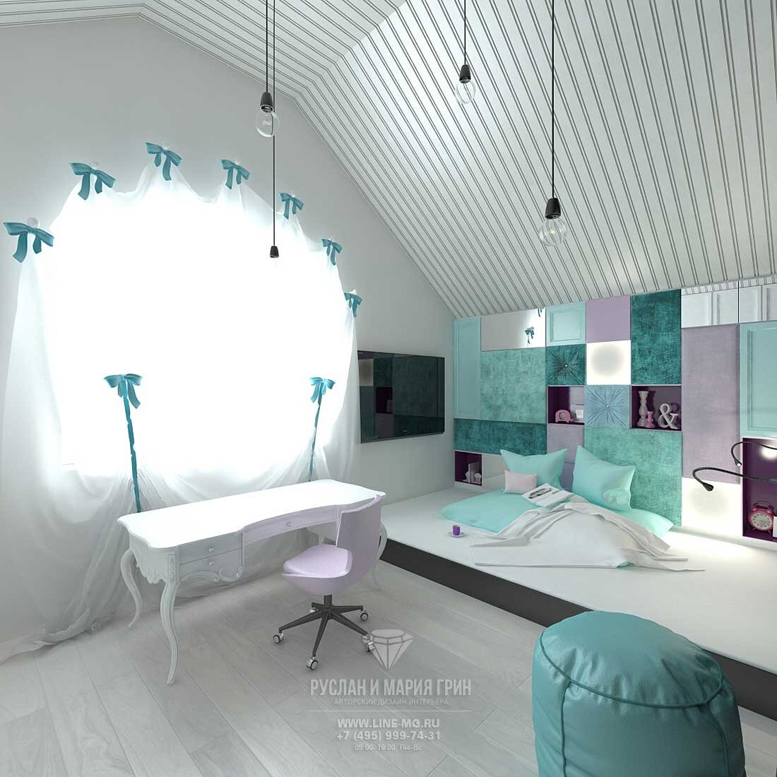 Дизайн детской комнаты для девочки в бирюзовых и сиреневых тонах