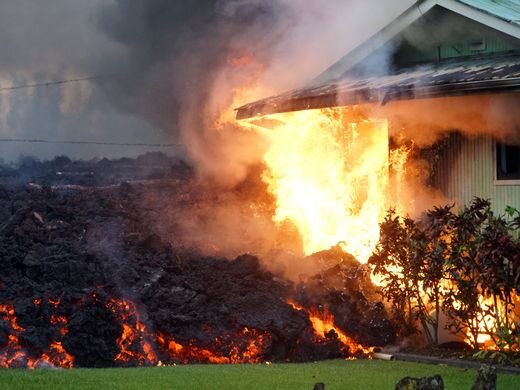 Массивный поток лавы сочится как огненная масса, собирая все на своем пути: дома, силовые полюса, дороги и деревья. Кипящие вентиляционные решетки ревут как океанские волны, бросая лаву в сотни футов в воздух и воспламеняя близлежащую растительность. Это было когда-то пышными зелеными ярдами, Лава оставляет тлеющий след разрушения. Деревья и столбы полезности с треском падали на землю на десятки футов от того места, где всплывал треск. Это сцена драматическая - и опасная - как угрожающий новый поток лавы из вулкана Килауэа был на столкновении с домами в районе Лейлани на большом острове Гавайев. Число домов, разрушенных вулканом Килауэа на Гавайях, подскочило до 26 в воскресенье, когда ученые сообщили, что лава извергает более 200 футов в воздух. Некоторые из более чем 1700 человек, которые эвакуированы, готовы к тому, что они не могут вернуться в течение довольно долгого времени ». «Как я могу уйти от этого?» - сказал Грег Чун. «Это опыт раз в жизни». Две новых трещины появились в од