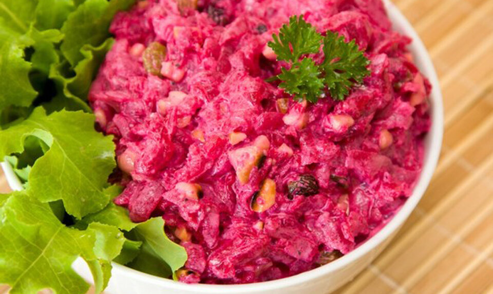 Салат из свеклы и чернослива простой в приготовлении, но полезный и вкусный. Он является отличной профилактикой дефицита железа. Может стать отличной закуской или вкусным праздничным блюдом. Продукты используются бюджетные, поэтому его можно готовить на каждый день. Свеклу можно отварить или оставить сырой. В первом варианте она обладает мочегонным действием, во втором – снижает давление и уровень сахара в крови. Его можно использовать в качестве гарнира к мясным или рыбным блюдам. Салат из свеклы не надоедает. Его можно модернизировать, добавляя изюм, орехи или творог. Экспериментируйте, вам понравится. На нашем сайте вы найдете еще 5 вариантов салата из свеклы. А в этой статье мы познакомим вас с базовым классическим вариантом такого салата. Необходимые продукты Начинаем готовить Салат можно заправить и растительным маслом, зависит от ваших вкусовых предпочтений.