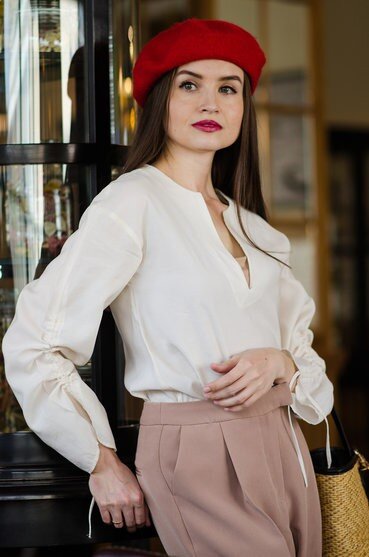 Тема французского стиля меня настолько вдохновила, что я решила разделить ее на два поста, где во втором использовала яркие аксессуары. В моем случае - красный берет и туфли на низком каблуке.