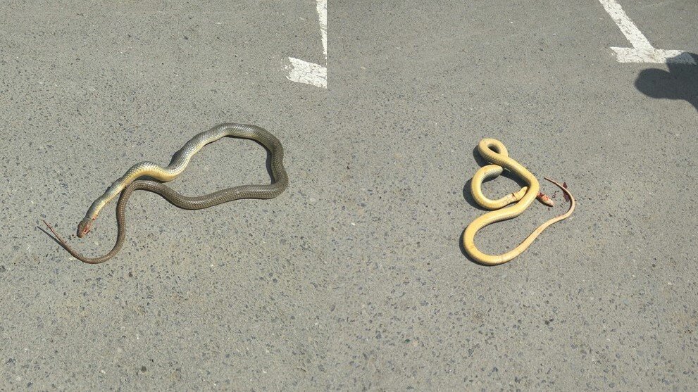 Чаще всего под острие лопаты, швабры и других подручных орудий убийств попадают Желтобрюхие полозы. Они пугают человека не только своими размерами до 2 метров в длину, но и поведением. Напуганный полоз может стать в стойку, начать издавать устрашающие звуки и даже прыгать на человека и пытаться его укусить. Но все это от страха. Укус полоза болезненный, однако сам по себе опасности для здоровья не представляет. Увидев его стоит оставить змею,пока она сама не скроется с глаз человеческих долой.