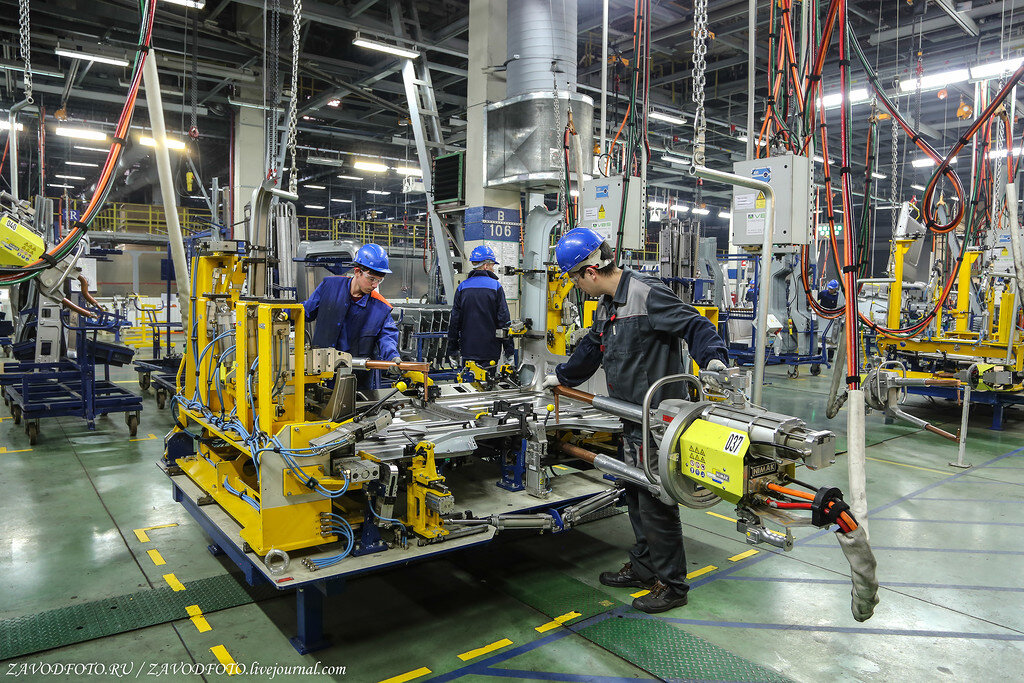 Ни дня без КАМАЗа и на этой неделе. Сегодня я вам покажу их Прессово-рамный завод, который специализируется на производстве деталей и узлов для семейства грузовых автомобилей и автобусов (рамы, кабины, узлы и детали платформы, шасси, оперения, двигателя, системы выхлопа, топливные баки и пр.), а также на изготовлении штамповой оснастки. Прессово-рамный завод был основан в 1971 году. 5 ноября 1974 года была изготовлена первая деталь, а 15 сентября 1975 года бригада С. Ромашкова собрала первую раму. Первая кабина здесь была изготовлена 19 января 1975 года. Ещё через год, 12 января 1976 года на заводе была замкнута последняя технологическая цепочка - началась окраска деталей и узлов. 2. Первым делом идём в Цех по сварки кабин Сам ППРЗ состоит из 13 основных цехов и более 30 вспомогательных цехов и служб. Производство Прессово-рамного завода размещено на территории главного корпуса площадью 31,8 га. Да, на КАМАЗе тут всё большое. Прессово - рамный завод рассчитан на производство 150