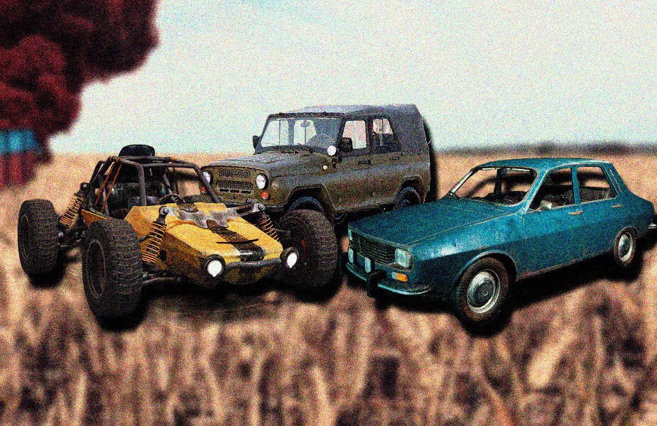 - Очень шумный, особенно при ускорении Этот малыш крайне удобен в управлении, идеален при поездах по горам и неровностям, но слишком шумный и открытый, а при игре с отрядом и вовсе становится проблемой, так как в нём поместится всего два игрока. УАЗ/УАЗ-469 + Устойчивый