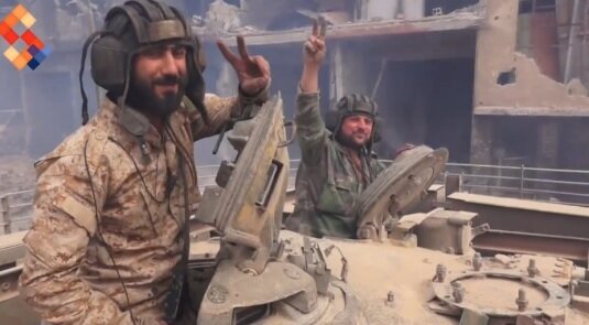Кадры боев за Эль-Хаджар-эль-Асвад между правительственными частями и группировками террористов.