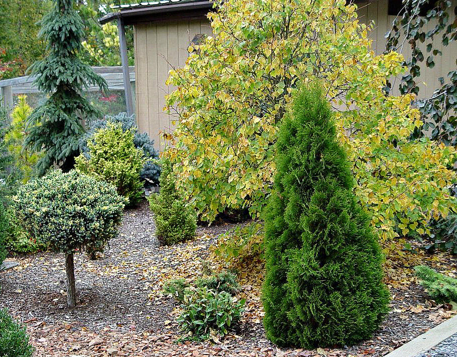 Современный сад трудно представить без хвойных растений. И даже на самом небольшом участке можно посадить 2-3 хвойных растения. Это может быть туя и можжевельник. Как посадить в саду тую? Выбираем место для туи Если у вас есть участок, где часть времени нет солнца, например, за домом - здесь не посадишь яблоню, не сделаешь грядки, а для туи оно вполне подойдет. Можно посадить тую и на открытом солнечном месте, только здесь ее придется дополнительно поливать. Лучше всего в полутенистом месте создать уголок хвойных растений, и начать можно с посадки туи. Сажаем тую К почве туя не особенно требовательна, обычная садовая ей вполне подойдет, даже глинистая почва ей не помеха. Лучшее время для посадки хвойных растений – весна, и сейчас еще не поздно, тем более что растения сейчас в основном продаются с закрытой корневой системы, и сажать такие можно в течение всего лета. Копаем яму диаметром 60 см, в глубину -70-80 см. На дно насыпаем дренаж (если почва обычная, совсем немного, если сырая