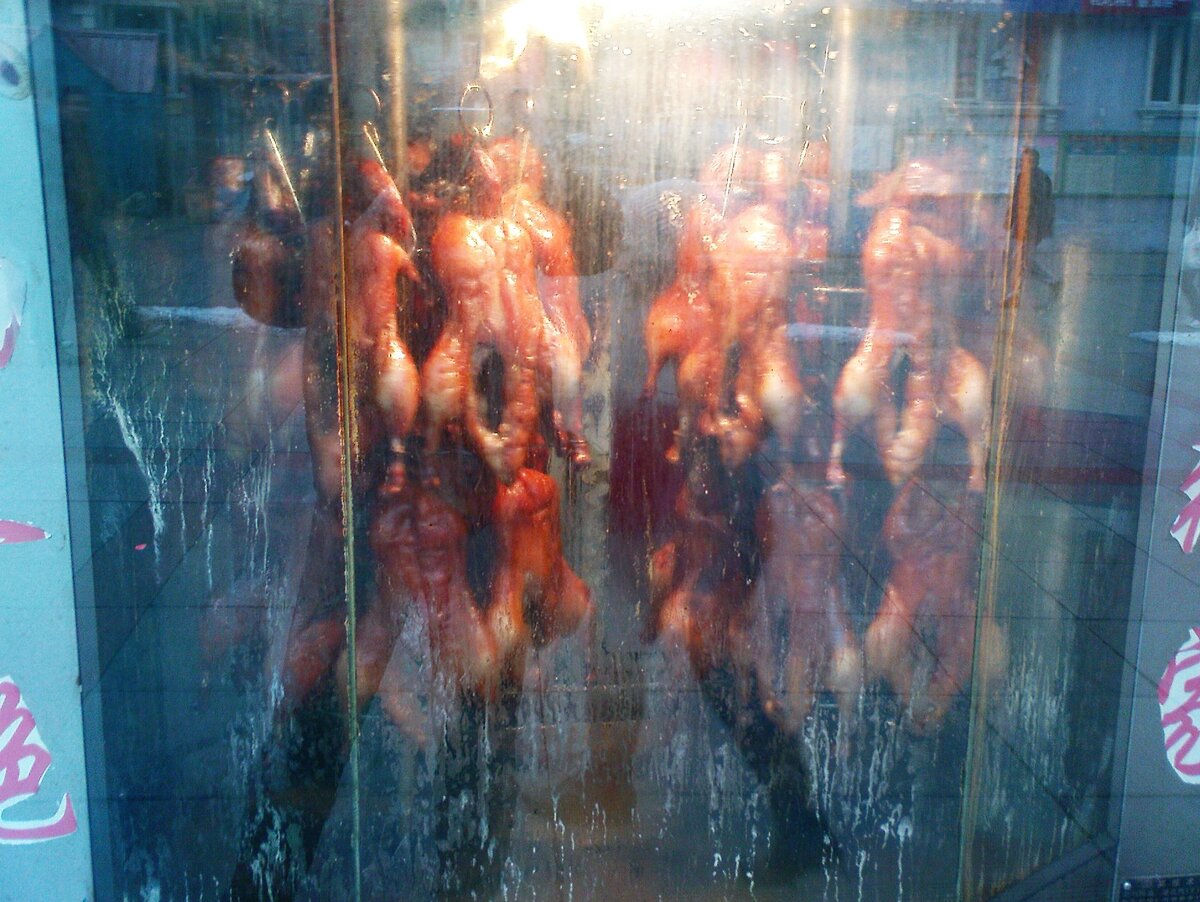 Чем хорош Китай, так это тем, что тебя лечат на ходу. Идёшь по улице буквально, и видишь еду, которая может исцелить тебя от всех болезней сразу, прямо на месте. По крайней мере, так говорят продавцы. Верить им или нет - каждый решает для себя сам, но как говорится, самовнушение это великая вещь. Вот, например, уличный ларёк по продаже лечебных уток. Даже в России говорят, что у этих птиц мясо полезное, особенно жир - а в Китае к ним вообще особое отношение. Почему лечебных? Потому что утки эти не простые, а замаринованные в особой смеси целебных приправ и трав. О чём и сообщает это объявление: Отдельно выделю следующие моменты: И всё это богатство стоит всего 20 юаней - 200 рублей за целую жареную лекарственную утку! Как целебная утка на вкус, спросите вы? Да просто супер. Ароматная, острая, сладковатая, с сильным запахом пряностей. Не знаю, самовнушение или нет, но я действительно почувствовал прилив бодрости после того, как съел ножку! В общем, будете в Китае - не пропустите. В