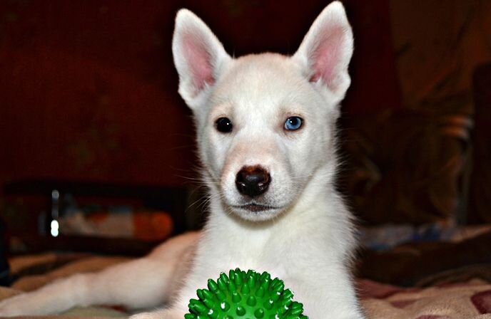 Еще один необычный окрас хаски — ближе к белому классическому цвету.