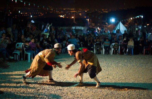 Прелюдия к борьбе называется «мейдан-газмек». Это разминка, традиционный ритуал, напоминающая своеобразный танец: стройные борцы, обнажены до пояса, одеты в свободные шаровары, расшитые цветным узором, подпоясаны мягким поясом. Соперники плавно двигаются по кругу, по обеим сторонам
