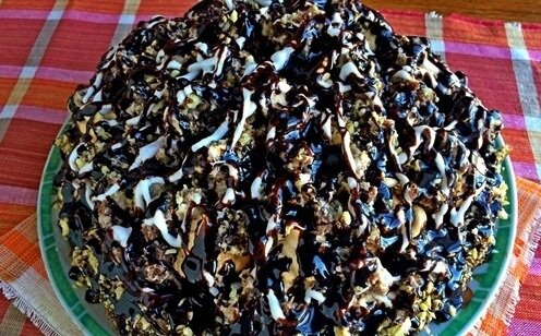 Торт Графские развалины имеет необычную форму, напоминающую горку с рельефным верхом. Эта горка выкладывается или из кусочков шоколадного бисквита, или из кругляшков безе. В нашем же рецепте графские развалины мы соединили оба эти варианта и получили невероятно вкусный и красивый торт. Ингредиенты: Приготовление: 1. Корж. Отделяете три яичных белка, делаете это очень аккуратно и в сухую посуду. Убираете их в холодильник. Оставшиеся три желтка, целое яйцо и 180 г сахара взбиваете миксером. 2. Добавляете в полученную массу сметану, разрыхлитель и какао-порошок. Хорошо перемешиваете, можно использовать миксер. 3. В самом конце вводите просеянную муку. Тесто получается средней густоты. 4. Выпекаете один корж в форме на 26 см. Готовность определяете по сухости зубочистки или спички. Даете бисквитному коржу полностью остыть и разрезаете его вдоль на два, один из которых должен быть тоньше. Тонкий корж оставляете целым, а другой режете на куски небольшого размера. 5. Безе. Из холодильника