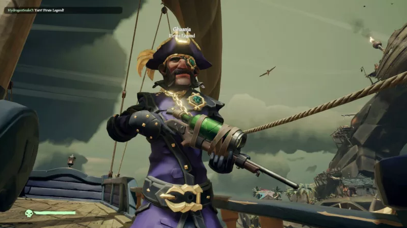 На этих выходных, я сел играть в Sea of Thieves. Когда я отплыл в полном одиночестве, коротая время, пока мои друзья войдут в игру, я столкнулся с другой группой игроков. Такие встречи как правило приводят к тотальной катастрофе, но я вместо того чтобы попытаться сбежать подплыл лицом к лицу с незнакомым кораблем. Когда я увидел этот корабль, я был удивлен как он был украшен. Корпус окрашен в глубокий фиолетовый оттенок и отделан золотыми виньетками, а на основном парусе был нанесен огромный череп. Стало понятно, что я имею дело с опытной командой, и когда я вошел на их фрегат с моего крошечного корабля, я начал прыгать вверх вниз, чтобы сообщить о своем мирном намерении. Казалось они смотрели на меня, как Вы смотрите на прыгающую перед Вами собачку, но в итоге поняли что я не угроза. Именно тогда, взглянув на одного из игроков я понял что он был легендой пиратов. Его звали Ghaanja , и он был самым впечатляющим пиратом, из всех что я когда либо встречал. В Sea of Thieves стать пи