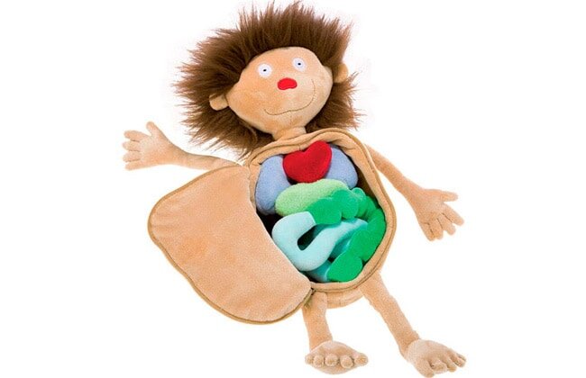 Выглядит игрушка забавно. Ребенок может сам достать и вставить обратно все органы, спрятанные внутри куклы. Но покупать ее впечатлительным детям не стоит.