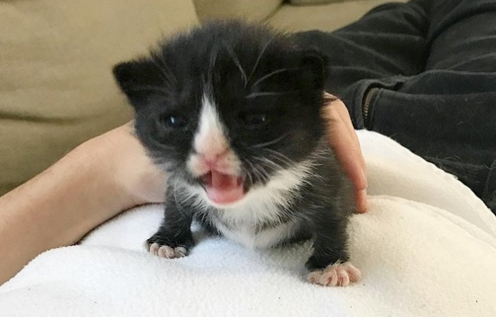 Маленький чудо-котенок преждевременно родился у бездомной кошки, которая жила в художественной студии. Когда его нашли, он был вялым и очень холодным. Но крошечный малыш-смокинг был полон решимости выжить! Когда Ханна Шоу - спасатель группы "Kitten Lady", приехала в студию, сестренка Барсука (так назвали новорожденного котенка) уже умерла, несмотря на все усилия людей. Маленький Барсук продолжал бороться, но его силы тоже были на исходе. "После нескольких бессонных ночей и круглосуточного питания, Барсук начал чувствовать себя намного лучше. Хотя он родился недоношенным и развивается медленнее, чем положено, он живет и это главное!", - говорит девушка. Несколько дней спустя Барсук удвоил свой вес. Это было первое маленькое достижение кошачьего ребенка. Примерно 2,5 недели назад котенок открыл свои чудесные глазки. Во время поездки к ветеринару, выяснилось, что у малыша есть мегаэзофагус. Это врожденная аномалия, из-за которой стенки пищевода сильно растягиваются и пища не проталкивае