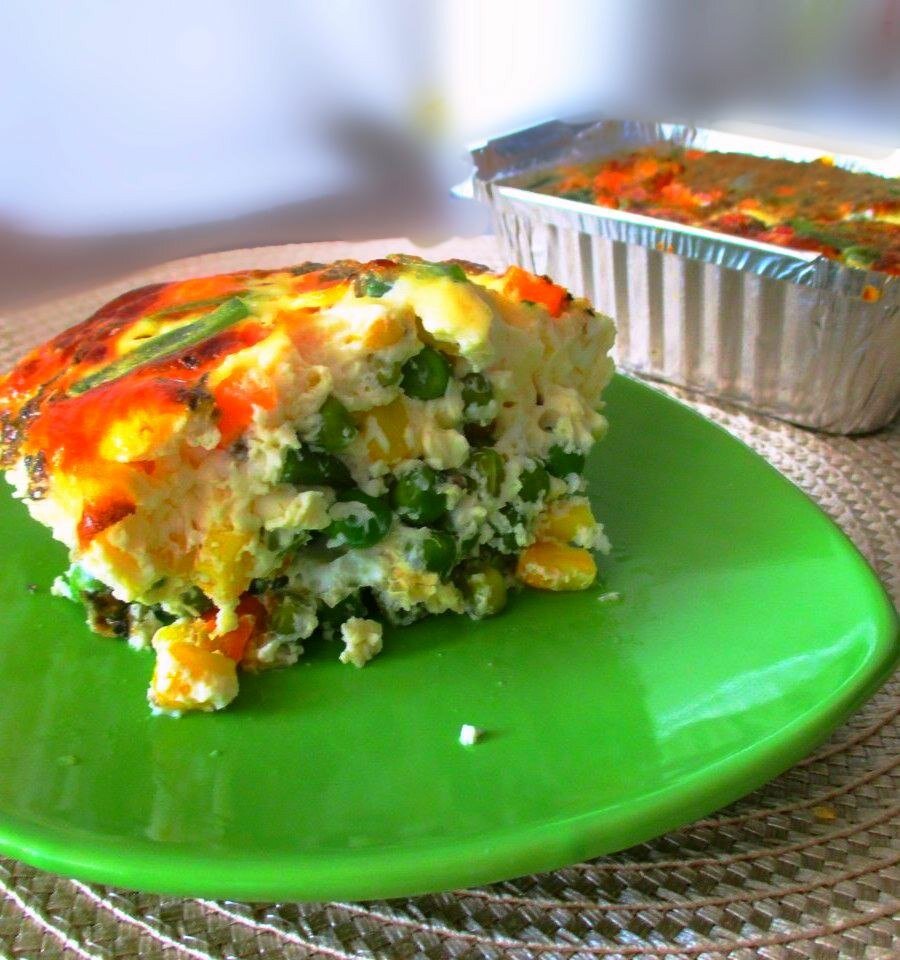 Омлет с овощами одновременно является и сытным белковым завтраком, и непривычным гарниром на обед, и диетическим питательным ужином! Овощи вы можете взять на свой вкус. За 5 порций ~ 60 рублей