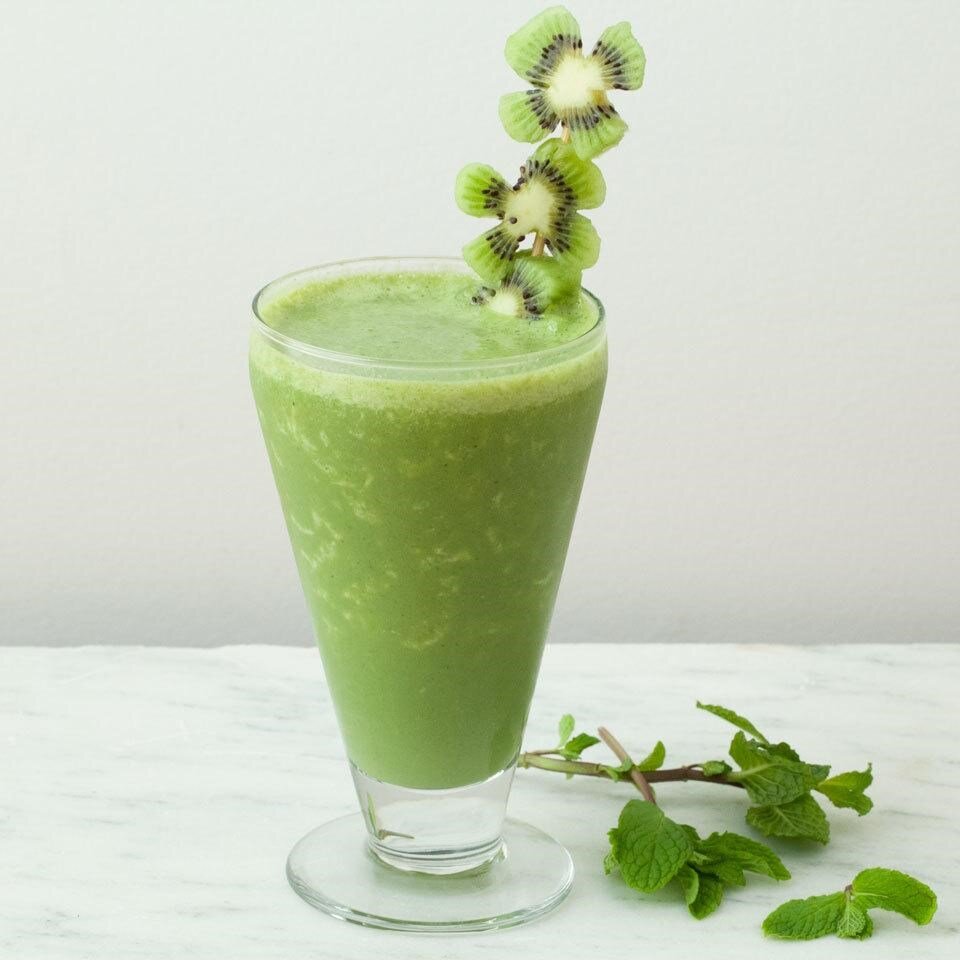 Этот восхитительный смузи поразит вас своим необычным сочетанием вкусов - сладость от ванильного йогурта и фруктов, смешанных с мятой не оставят вас равнодушными! Вам понадобится: 1 банан, 1 стакан шпината, 1/2 стакана нежирного йогурта, 1/2 стакана молока, листья мяты, 3-4 кубика льда. Рецепт: 1. Положите банан, шпинат, йогурт, молоко, мяту и лед в блендер. Смешайте до однородности. 2. Если хотите, разрежьте ломтики киви в формы трилистника и посетите на вертеле как на картинке. При желании подавайте коктейль, украшенный киви и мятой. Используйте только свежие ингредиенты и подавайте охлажденным. Подписывайтесь на наш канал, ставьте лайки, чтобы узнать еще больше необычных рецептов;)