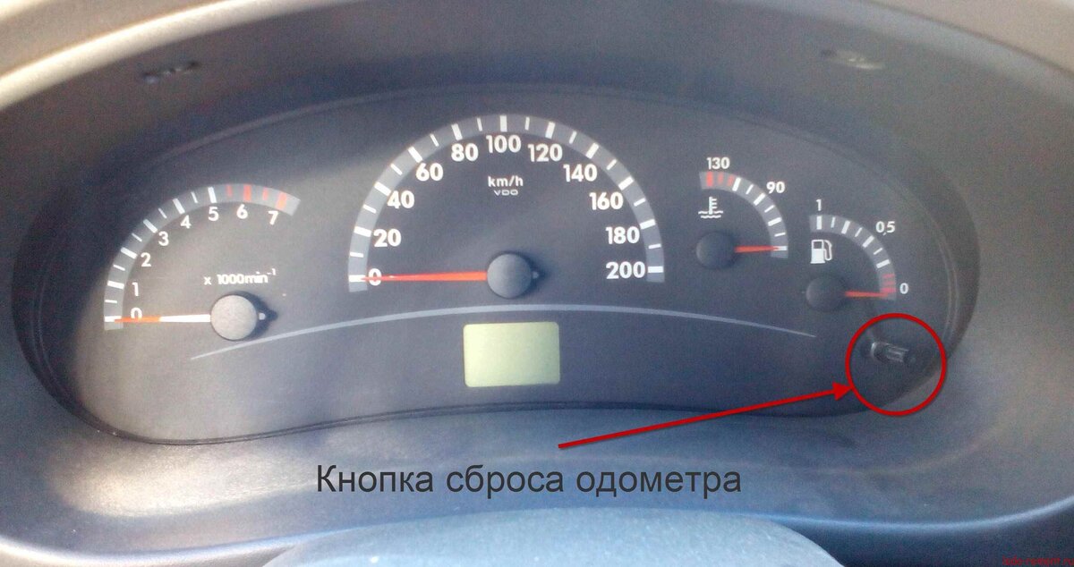 Здравствуйте, сегодня изучаем функционал приборки VDO. Она знакома владельцам первой калины, ваз 2110 и 2111 и др. Маршрутный компьютер встроен в приборную панель, его табло находится в ее центре - под спидометром. Маршрутный компьютер состоит из двух строк: верхняя показывает пробег в километрах, а нижняя - универсальная, она показывает различную информацию. Переключение между общим и суточным пробегом, отображаемым на верхней строке маршрутного компьютера, осуществляется кратковременным нажатием кнопки сброса одометра (на фото выше). Чтобы обнулить суточный пробег необходимо нажать ту же кнопку и удерживать ее 3-5 секунд до тех пор, пока значение суточного пробега не обнулиться. Рассмотрим нижнюю строчку маршрутного компьютера. По умолчанию после включения зажигания она отображает часы. При температуре воздуха за бортом ниже +5 градусов может отобразиться оповещение об опасности гололеда и включится режим отображения температуры воздуха на улице. С помощью кнопок вверх/вниз на подру