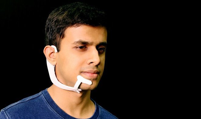В XXI веке технология субвокализации переживает возрождение – группа ученых из MIT под руководством Арнава Капура разрабатывает гарнитуру для управления компьютером без участия голоса. Им удалось почти полностью исключить акустическую составляющую при передаче слов от человека к машине и наоборот. Это не надстройка над существующими системами, а принципиальной новый интерфейс, названный AlterEgo.В отличие от ларингофона, эта гарнитура реагирует не на механические колебания кожи при произнесении слов, а на электрическую активность в мышцах и нервах гортани, челюстей и языка. Пользователю не нужно в прямом смысле открывать рот, пропускать воздух и произносить слова, достаточно «внятно и четко» представить себе, как он выговаривает команду. Набор электродов считает импульсы, нейронная сеть сопоставит их узор с базой данных и дешифрует сказанное человеком.В ходе исследований команда Капура сократила количество датчиков с полутора десятков до всего четырех, определила оптимальные места их