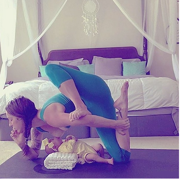 Это Карли Бенуэр – опытный йог. Женщина родила уже не первого ребенка, но не рассталась со своим любимым занятием и совмещает кормление с тренировкой. Девушке сейчас 30 лет, она имеет троих детей. Живет Карли в Техасе. Сейчас она самая настоящая звезда Инстаграма. Карли выкладывает фотографии кормления грудью свою младшую дочку в различных позах. У женщины 68 тысяч подписчиков, которые полностью ее поддерживают. Она регулярно радует своих подписчиков фотографиями грудного кормления в замысловатых позах. Девушка не переставала тренироваться даже во время беременности. Карли Полюбила йогу после вторых родов, так как различные позы помогали ей снять напряжение и избавиться от депрессии. Все упражнения девушка модернизировала под себя, чтобы при кормлении избежать таких проблем как нехватка молока или мастит.