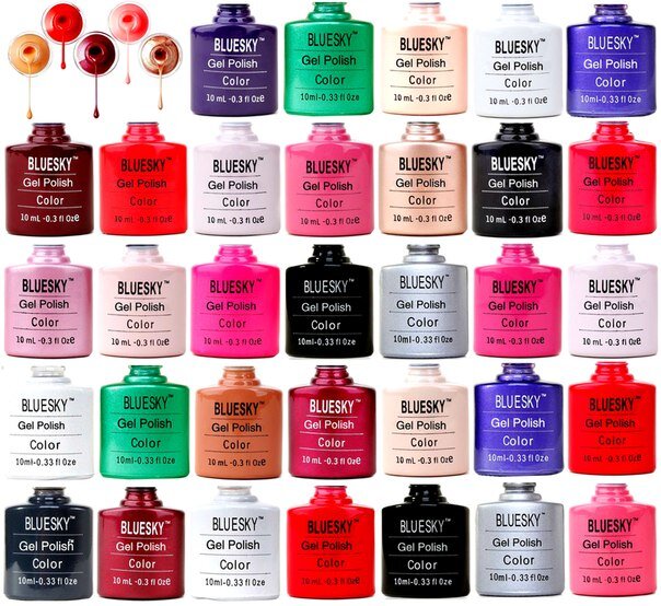 Гель-лаки Bluesky Shellac За 6 лет я испробовала много гель-лаков разных производителей. Сегодня хочу рассказать о гель-лаках фирмы Bluesky Shellac Номер цвета указан на голографической наклейке, на крышечке флакона. Но иногда её наклеивают на дно. Качество ничем не отличается от дорогих гель-лаков. Стойкие, яркие, насыщенные цвета. Bluesky копирует цвета CND. Состав, плотность и пигментация такие же. Огромная палитра цветов: яркие, тёмные, с блёстками, пастельные, термолаки, перламутровые, «кошачий глаз», неоновые оттенки! Я думаю, каждая найдёт подходящий для себя оттенок. Также производитель предлагает праймер, базу и топ без липкого слоя, матовый топ, каучуковые базу и топ. Удобная кисточка. Консистенция разная у разных оттенков, не густая, но и не жидкая, не затекает под кутикулу и не растекается в лампе. Ложится, ровно, не пузырится. Сохнет, как и все гель-лаки, 2 минуты в УФ-лампе и 30-60 секунд в LED. Ещё одно из достоинств Bluesky – это его цена, в пределах 90-180 рублей.